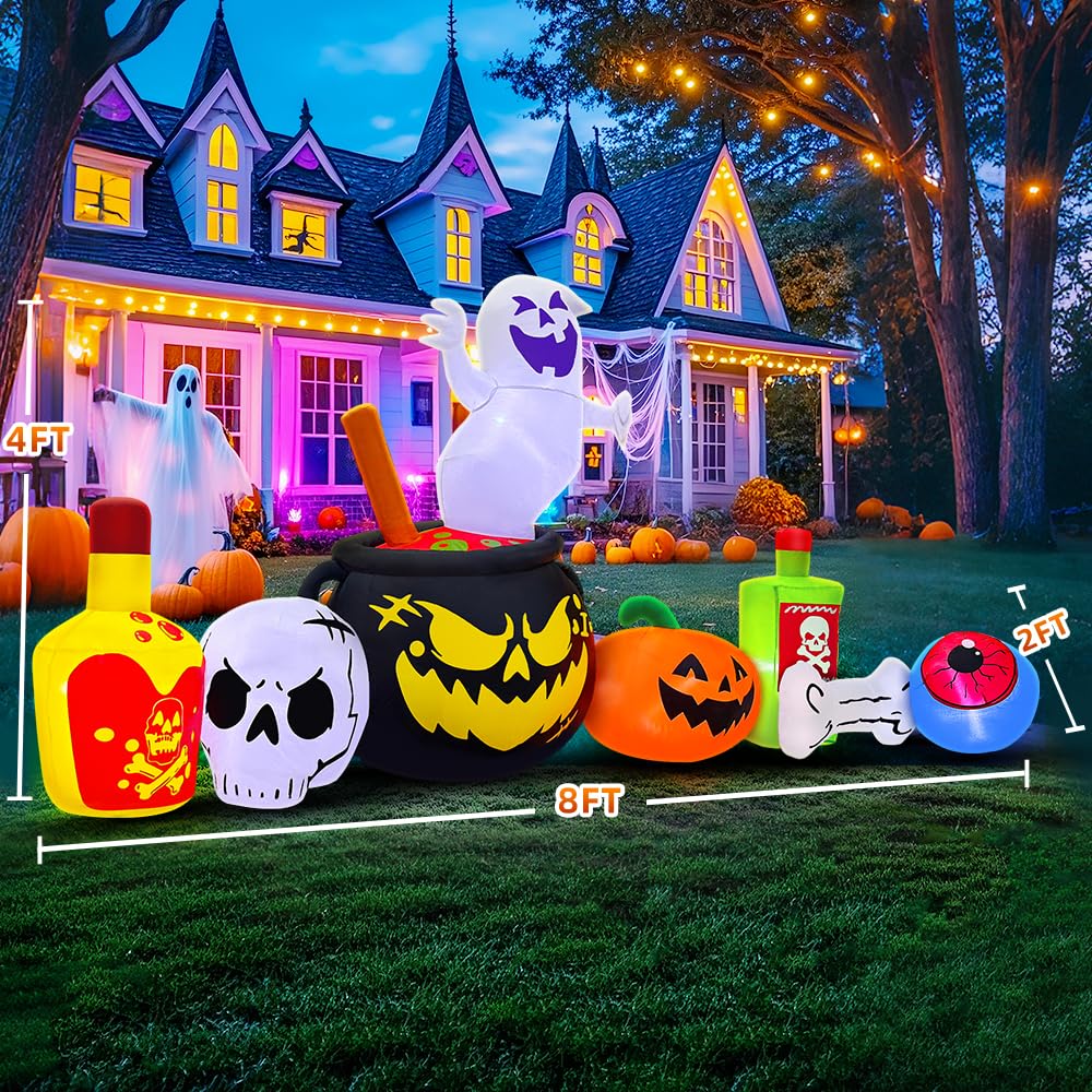 8FT Halloween Inflatable Decoration, Built in LED Lights Blow Up Poison Boiled Ghost/Skull/Pumpkin Decorations for Halloween Party, Indoor, Outdoor, Garden, Yard Lawn Decor