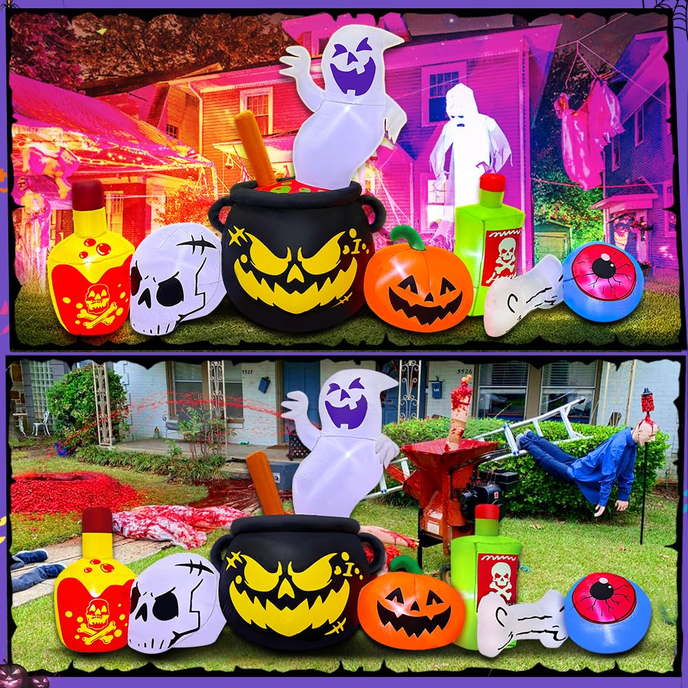 - 【 Unique Halloween Inflatable】Unique Halloween inflatable Poison Boiled Ghost/skull/pumpkin Inflatable Halloween Decor outdoor ,ghosts pumpkins witch Hat gnome Combo Halloween Inflatable will illuminate your yard and easily attract the guests, friends, and kids' attention so that can be the most attractive & halloween decorations outdoor in your neighbors.