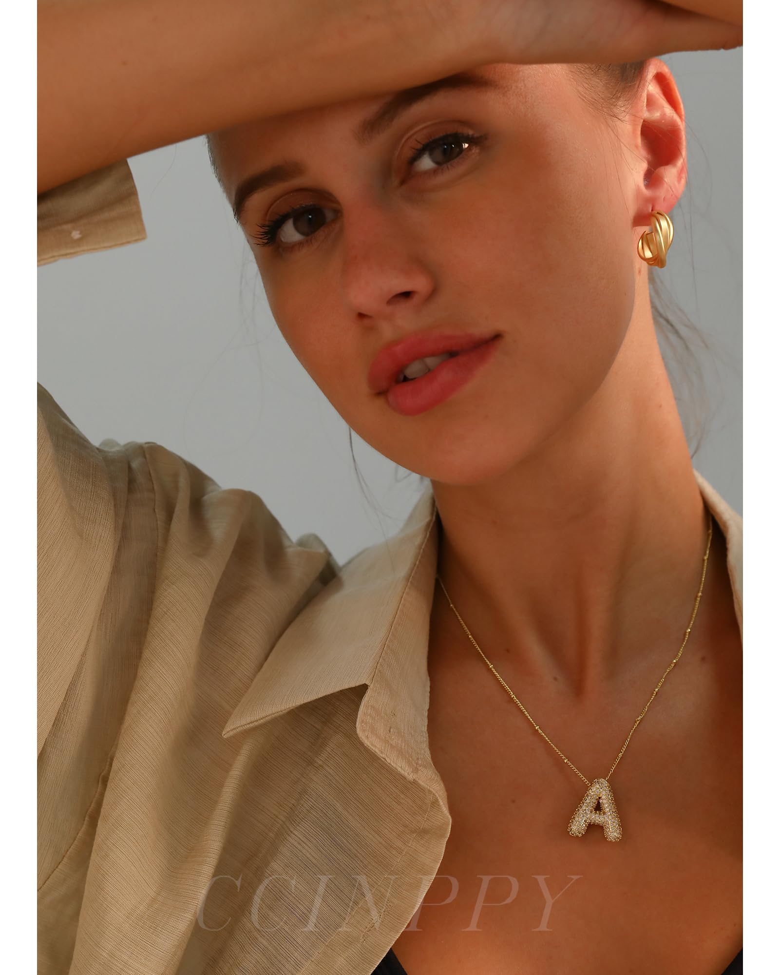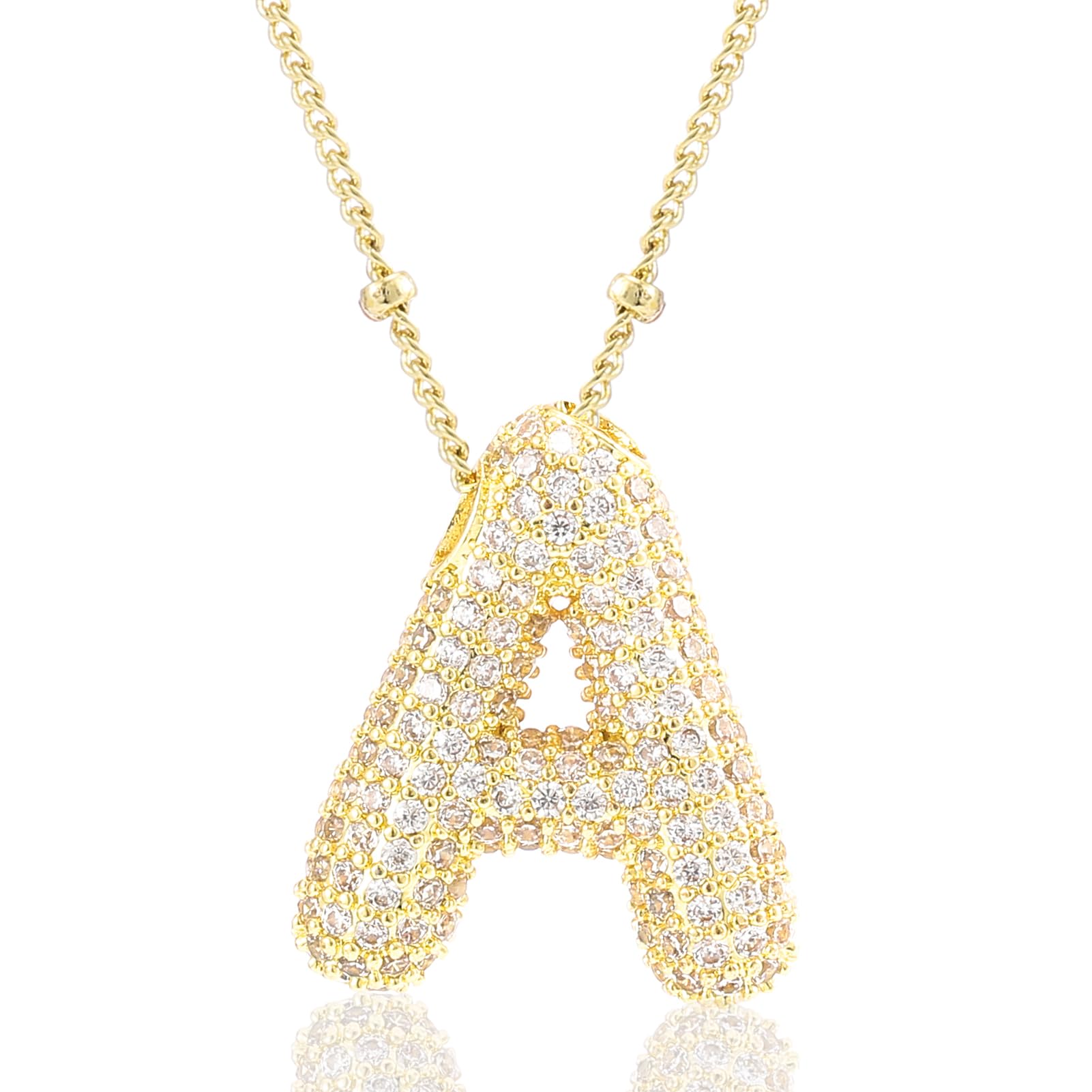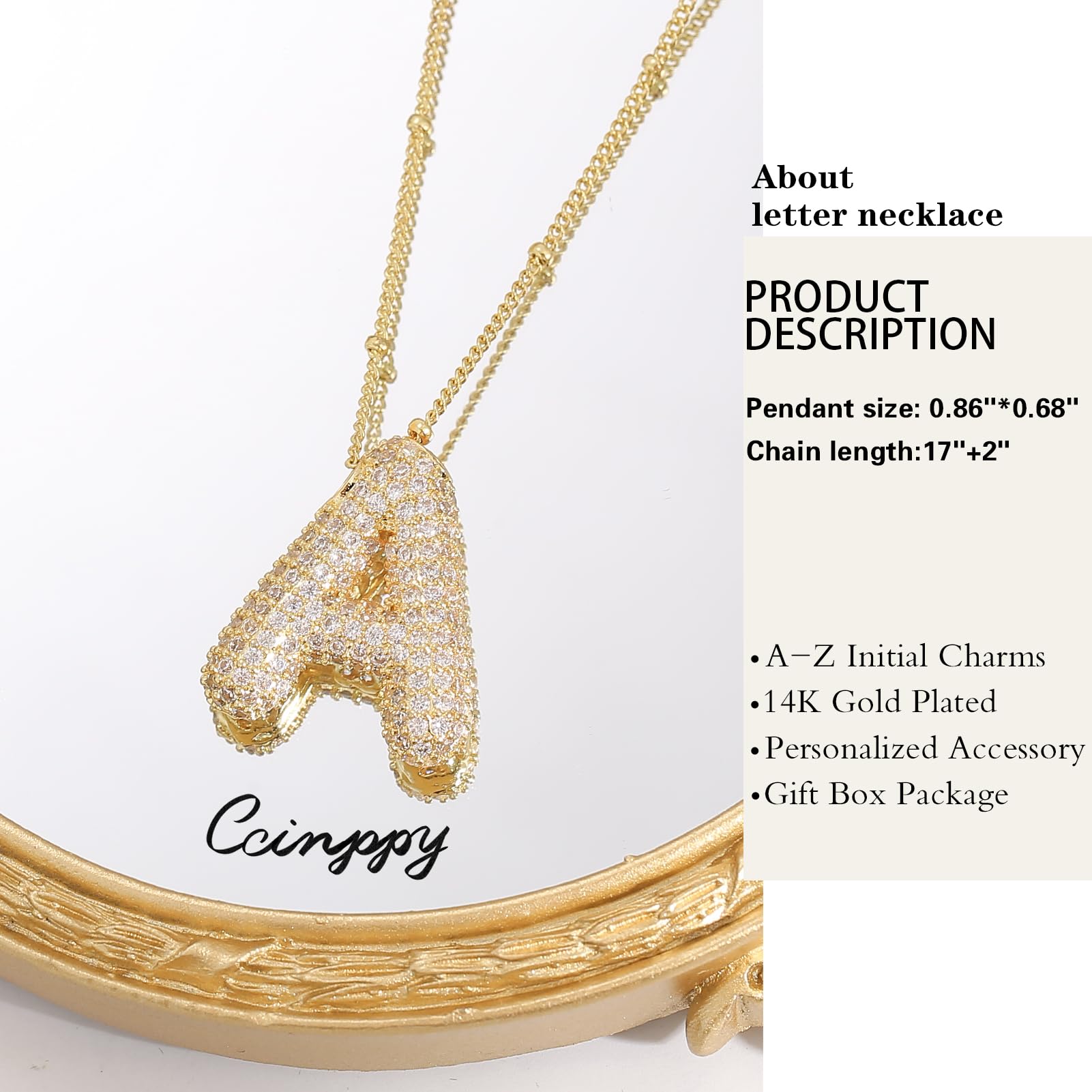 CCINPPY Letter Necklace, 14k Gold Plated Bubble Balloon Dainty Necklace for Women, Chunky Initial Charm Pendant Name Necklac e Personalized, Gold, Letter A