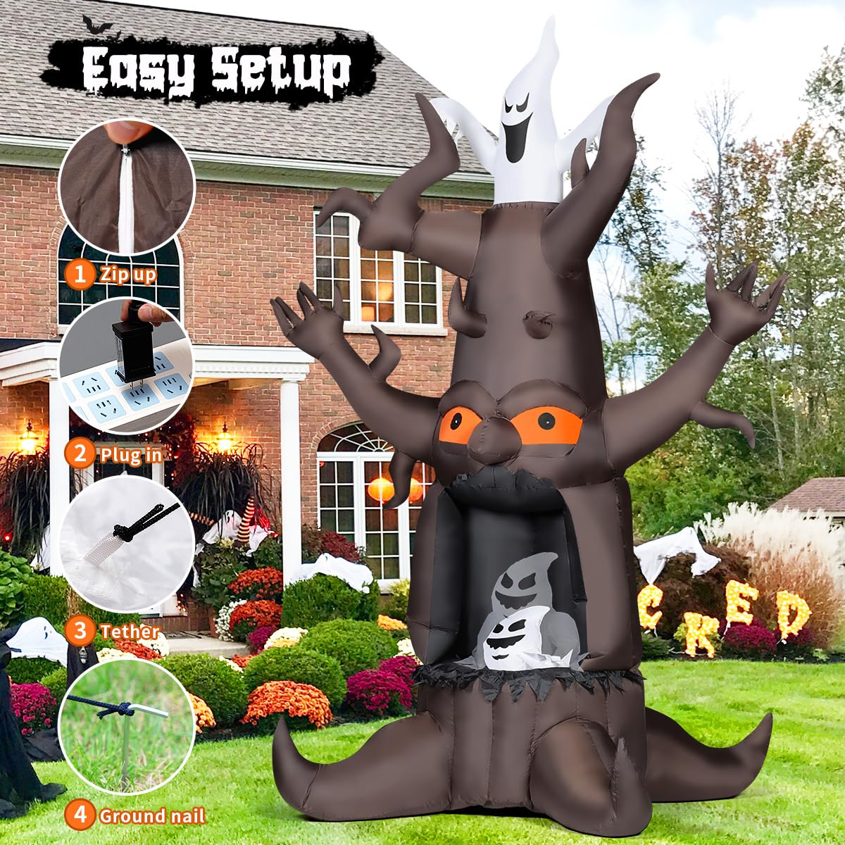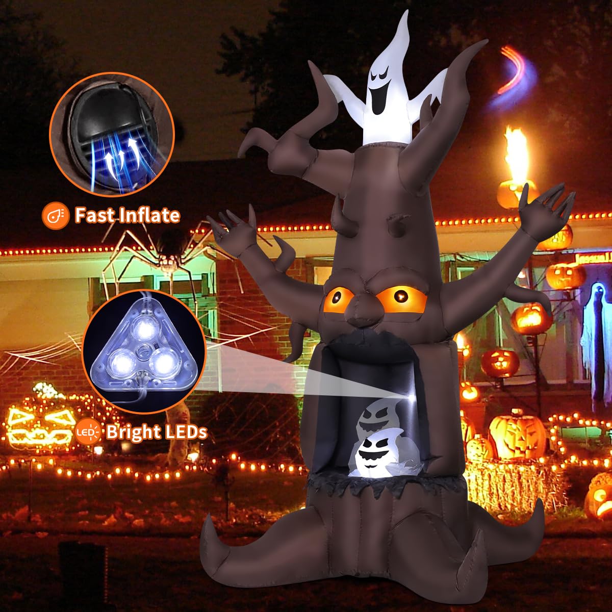 - Scary Dead Tree Halloween Decoration: Outdoor inflatable halloween animated dead tree with six white ghosts yard decorations, and built-in bright LED lights in the huge body, making your dead tree inflatble halloween special and attractive, creating a horrible Halloween spirit for your home