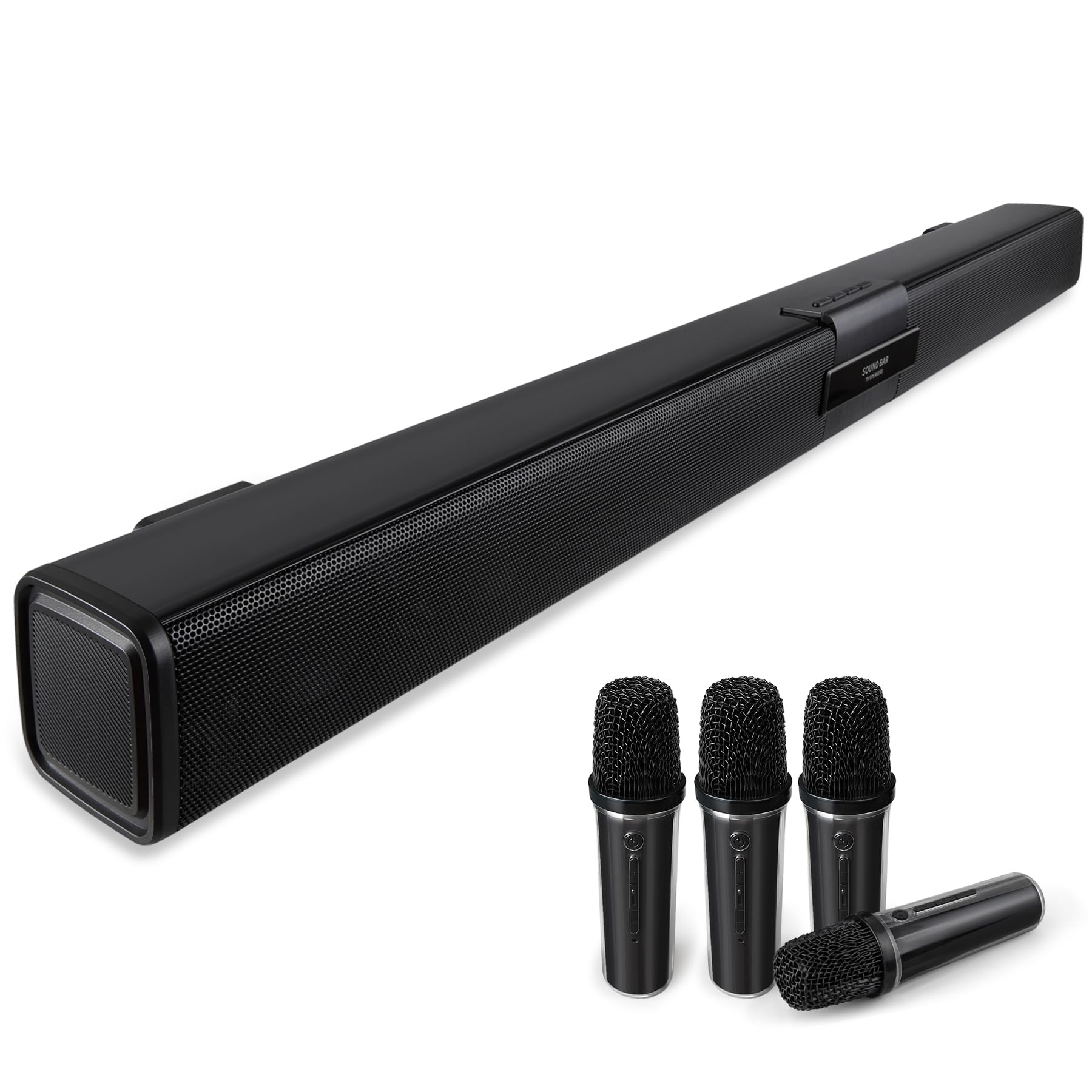 Quntelon TV Soundbar Speaker with Bluetooth/AUX/USB/TF/Coaxial, Sound Bar for Smart TV with 4 Wireless Microphones, Surround Sound System for TV (Full Black, 4mic)