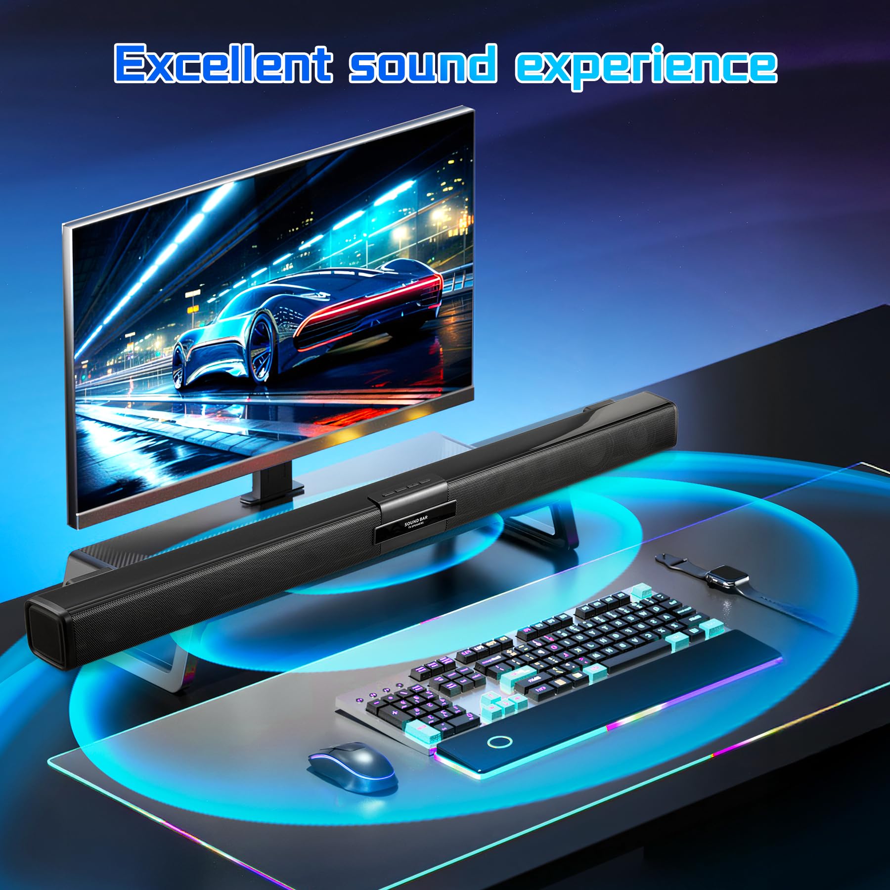 - EXCELLENT SOUND QUALITY PERFORMANCE: Dual channel surround sound effect, soundbar can simulate multi-channel surround sound effect through built-in multiple sound units. Dual diaphragm and bass enhancement technology provide a more stunning experience, enhancing the atmosphere of music and movies, bringing you an immersive auditory experience.